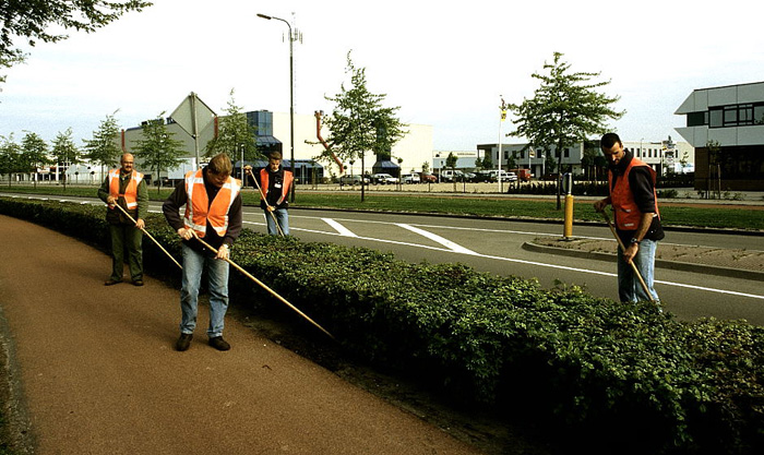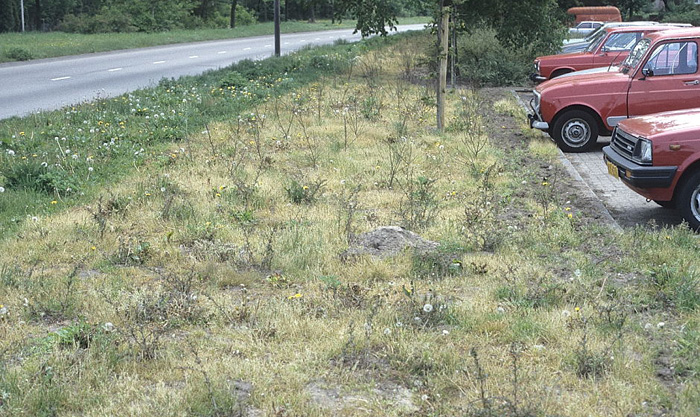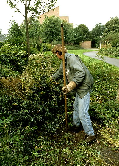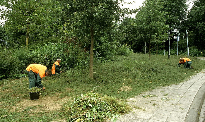 Jonge bodembedekkende beplantingen werden regelmatig met de hand gewied, omdat de gemeente afzag van het gebruik van chemische middelen. (Deventer 1996). Dit was financieel niet vol te houden. |
