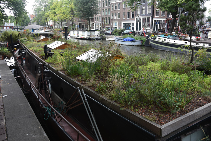 | Amsterdam-Centrum - Hier vind je woonboten, kades, straten en stegen die op allerlei manieren vergroend zijn. |