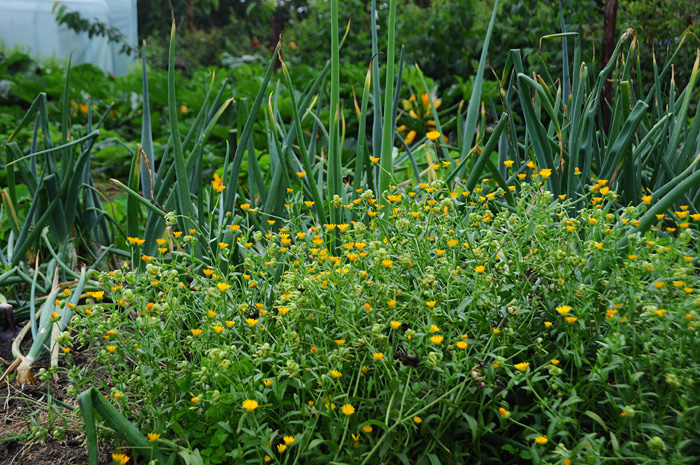 | Akkergoudsbloem in een moestuin |