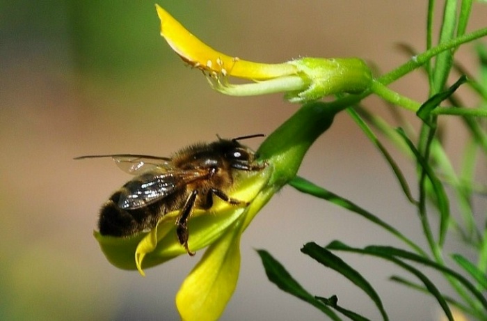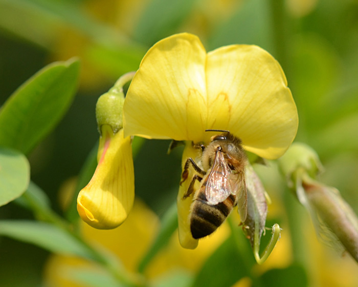| Honingbij op bloem Erwtenstruik - Caragana arborescens 'Lorbergii |