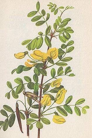 | Plaat en peulen Erwtenstruik - Caragana arborescens (bron Wikipedia) |