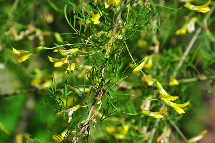 | Bloem: geel, bloeiwijze een okselstandige armbloemige (2-4) cluster |