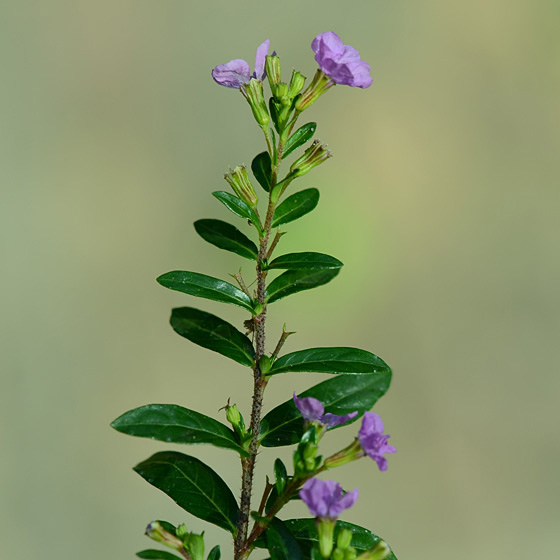 | Blad: glanzend, iets lancetvormig, lijkt op blad van hyssop |