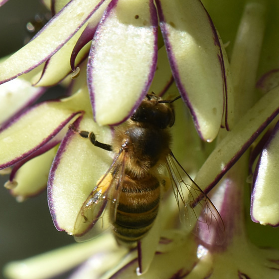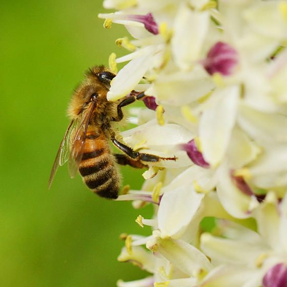 | Bijenbezoek: voornamelijk honingbijen die zowel nectar als stuifmeel verzamelen soms ook wilde bijen en een enkele keer een vlinder. |