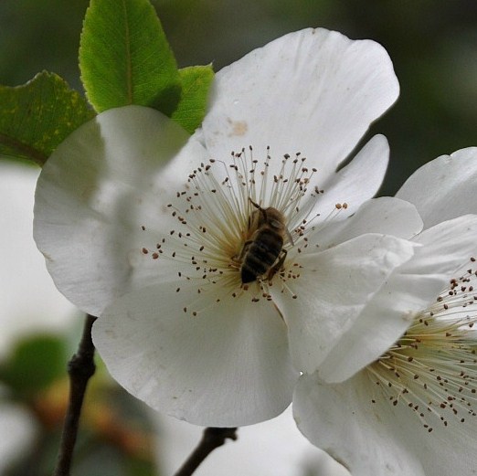 | Dracht: nectar en (stuifmeel?). Indicatie voor dracht: code 4. De waarnemingen zijn van de Heester in Oldenburg waar de plant tot in de schemer druk door honingbijen werd bezocht. |