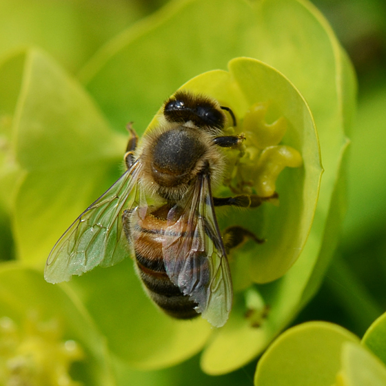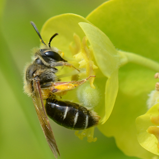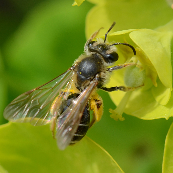 | Wilde solitaire bijen: zandbijen onder meer goudpootzandbij; |