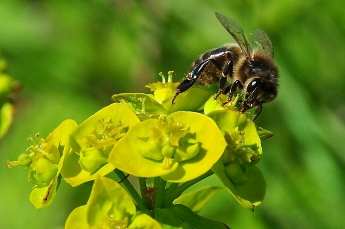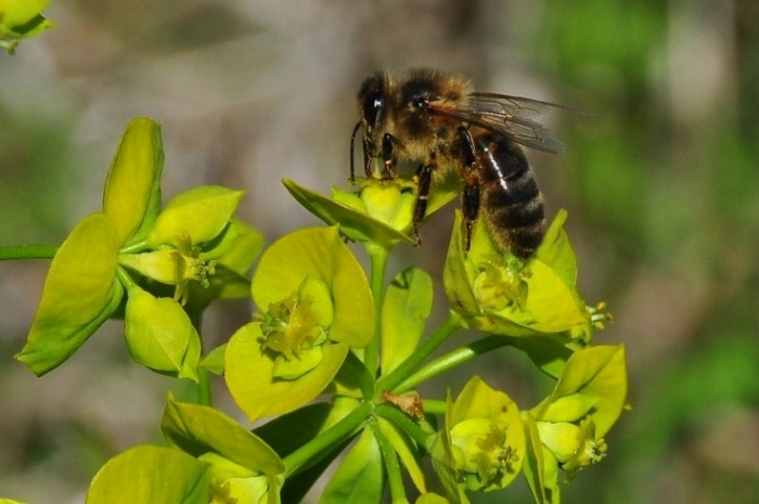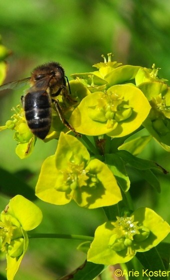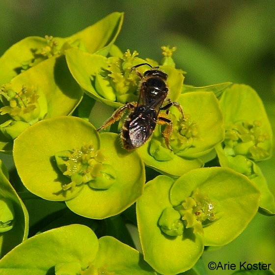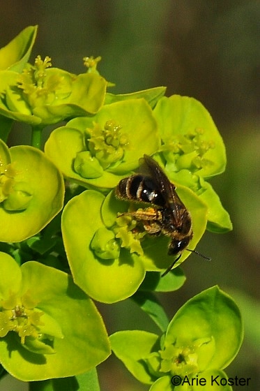 | Groefbijen op heksenmelk |