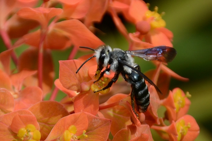 | Jardin Botanique Metz (Fr): hier zijn op verschillende planten mannetjes van de blauwe zandbijwaargenomen |