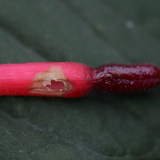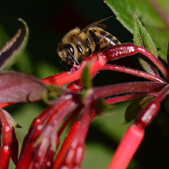 | Nectar is alleen toegankelijk via inbraak aan de voet van de bloembuis |