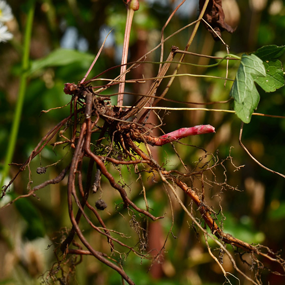 | Met dit wortelstelsel verankert de plant zicht tussen de wortels van andere planten |