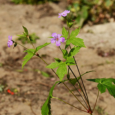 | Beheer: als vaste plant. De plant zaait zicht sterk uit en kan na verloop van jaren een groot gedeelde van de tuin bedekken. Geranium nodosum vestigt zich gemakkelijk tussen andere planten en verankert zich daar tussen de wortels waardoor hij moeilijk weg te krijgen. De plant heeft sterke invasieve neigingen. Dat kan vooral zeer negatieve gevolgen hebben voor de bosflora. Het zou beter zijn om deze plant niet meer toe te passen en de verkoop van deze plant te verbieden. |