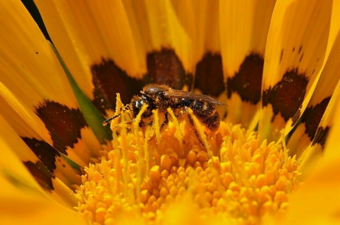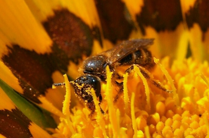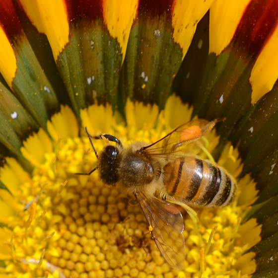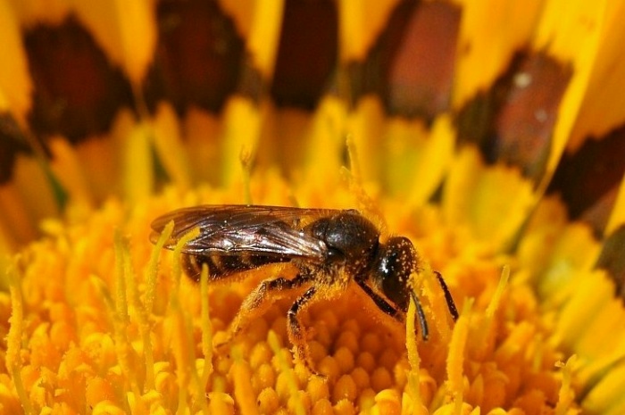 | Gazania splendens met groefbij (lasioglossum) |