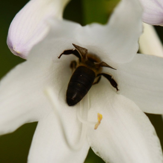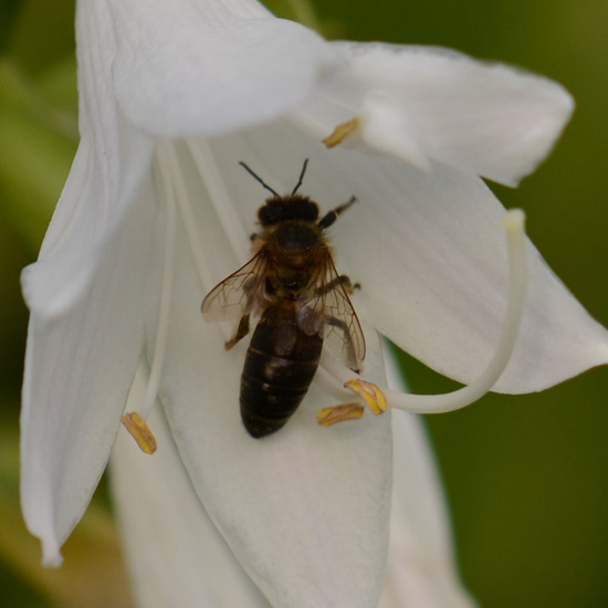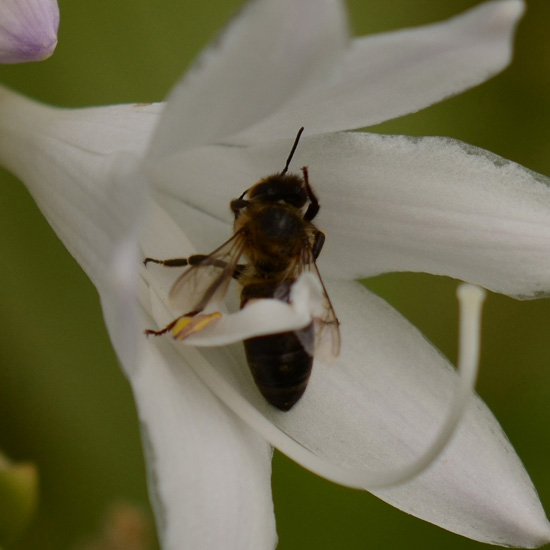| Op deze plek verschillende hosta’s die veel met elkaar gemeen hebben. Op de individuele planten heb ik nooit bijen gezien. De fotos zijn genomen in de botanische tuin van uitrecht. Ik heb de plaatsen een paar weken gevolgd. Bijen bezoek was talrijk. En is zeer waarschijnlijk te danken aan de 3-4bijenvolken op 100 m afstand van deze planten. (het was een vraag die ik nu beantwoord) |