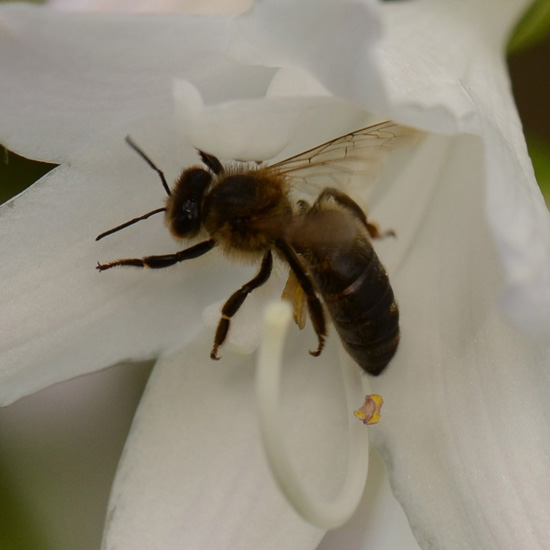| Deze plant wordt in het algemeen weinig door honingbijen bezocht, maar dat hangt ook af of er bijenvolken in de buurt staan. Wilde bijen heb ik nog niet waargenomen. |