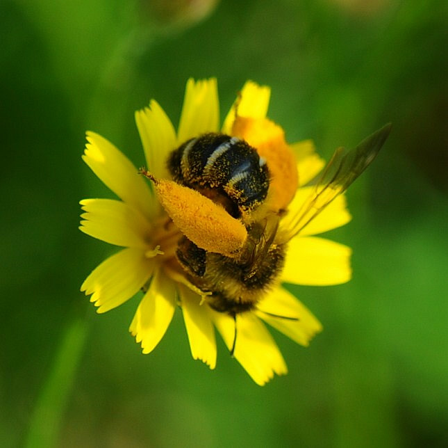 | Op dit graslandje midden in een niet te grootschalig landbouwgebied op ca. 1 km van bos en hei zijn in 2014 pluimvoetbijen en roetbijen talrijk waargenomen. Ook andere wilde bijen werden gezien zoals zandbijen en groefbijen. Daarnaast ook vlinders en hommels. Dit op ca 70 meter afstand van twee bijenvolken die ook vrij intensief (code 4) foerageerden op dit grasveldje. Hier gaan honingbijen, wilde bijen en vlinders heel goed samen. | |