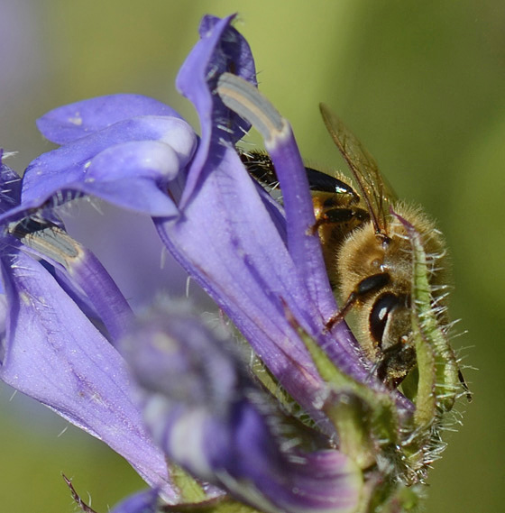 | Honingbijen zoeken nectar aan de basis van de bloem |