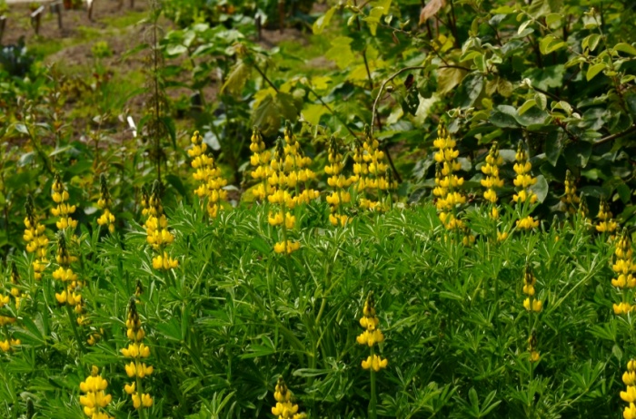 | Bloemen en bloeiwijze gele lupine - Lupinus luteus |