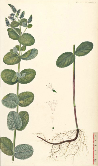 | Plaat van plant met ronde bladen - (bron: Flora Danica, Georg Christian Oeder et al) |