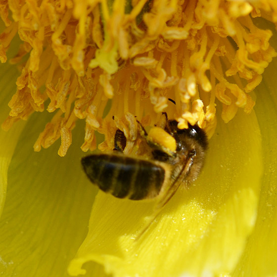 | Honingbijen: de bezoekt de bloem nog voordat deze is geopend |