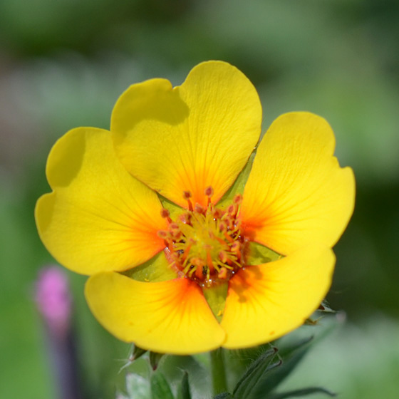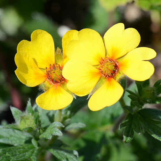 | Bloem: P. atrosanguinea heeft verschillende kleuren, geel, oranje, bleek tot fel rood. De De variëteit argyrophylla is vanuit het midden min of meer oranje gekleurd. |