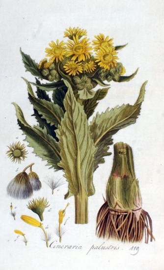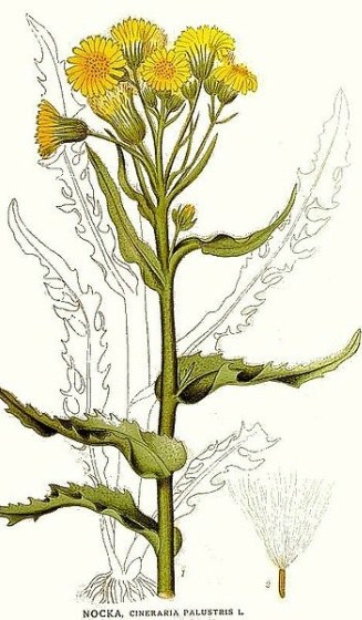 | Platen -Moerasandijvie - Tephroseris palustris - (bron links: Flora Batavia Jan Kops et al.; rechts: Carl Axel Magnus Lindman: Bilder ur Nordens Flora ) |