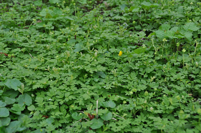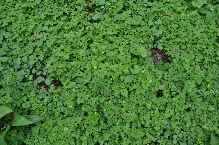 | Vegetatie met speenkruid en look zonder look - |