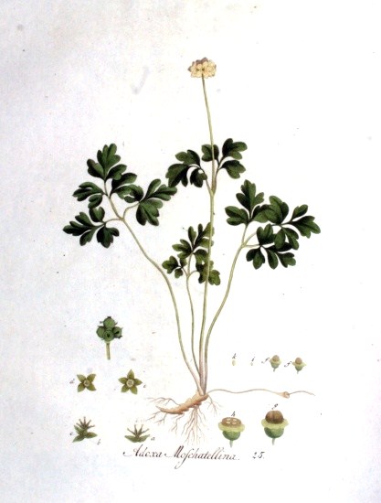 | Muskuskruid - Adoxa moschatellina - (bron links: Deutschlands Flora in Abbildungen.Johann Georg Sturm; onder: Flora Batava Jan Kops et al.) |