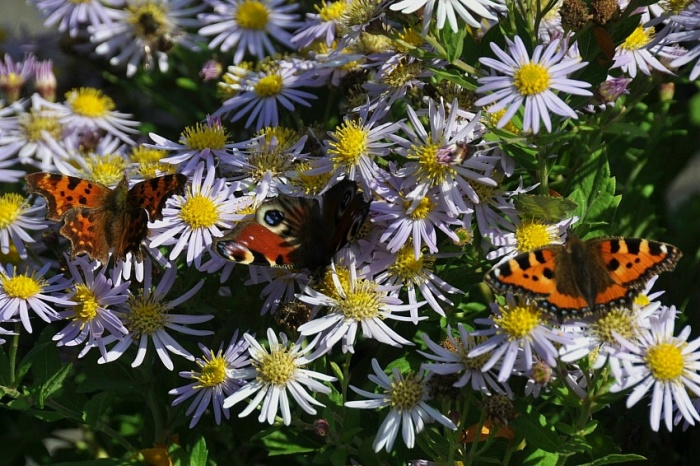 | Gehakkelde aurelia, dagpauwoog en kleine vos |