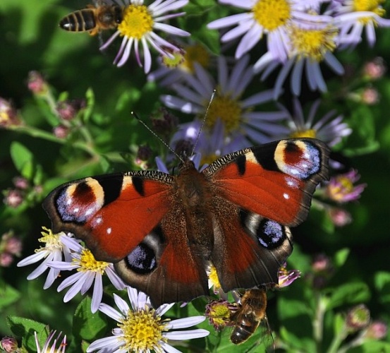 | Dagpauwoog met honingbij en blinde bij |