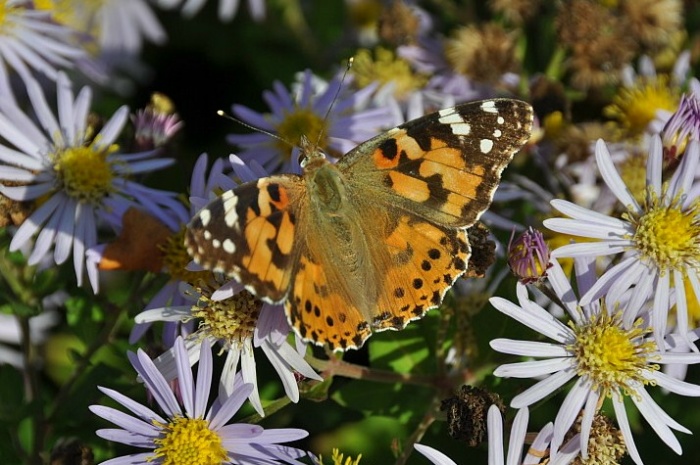 | Distelvlinder, gehakkelde aurelia en dagpauwoog |