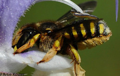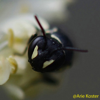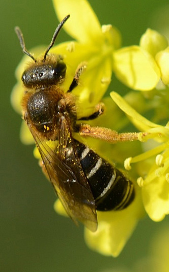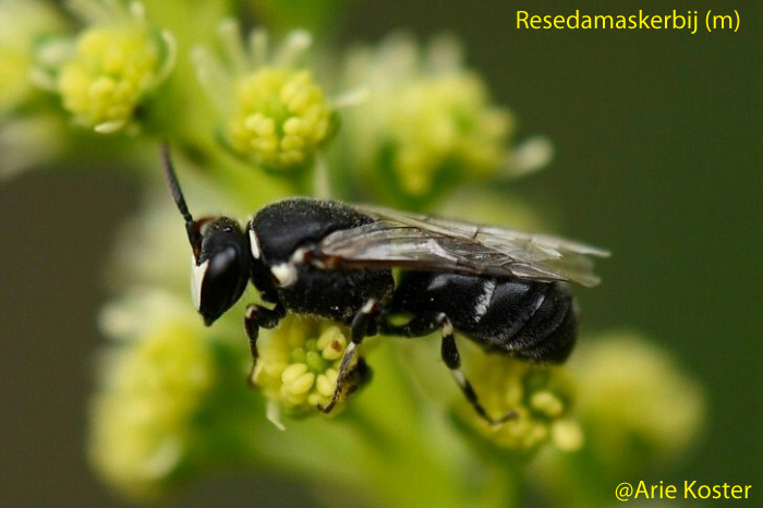 | Maskerbijen (25): kale bijen met gele delen op hun gezicht en vaak kleine gele vlekken op hun poten (25) |