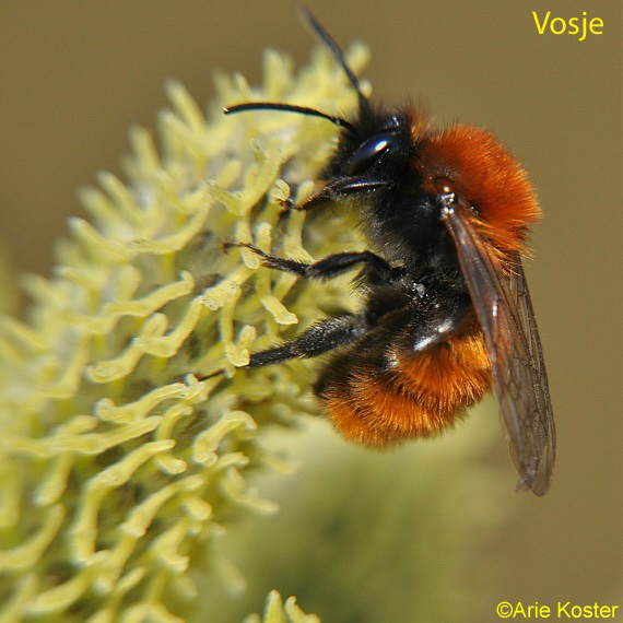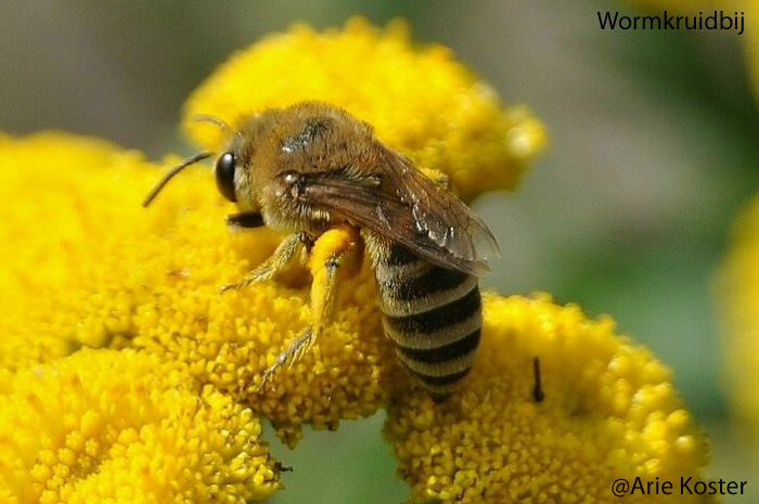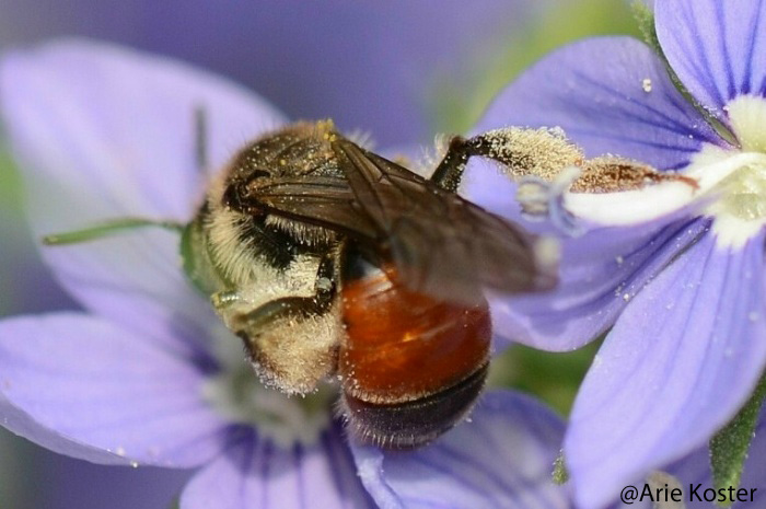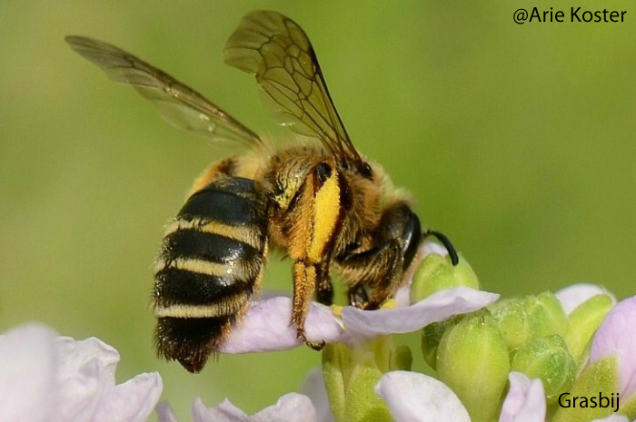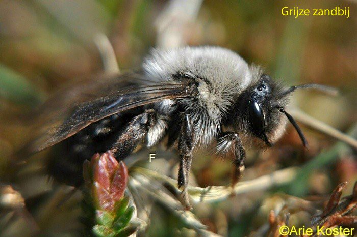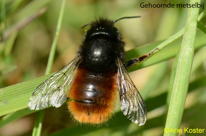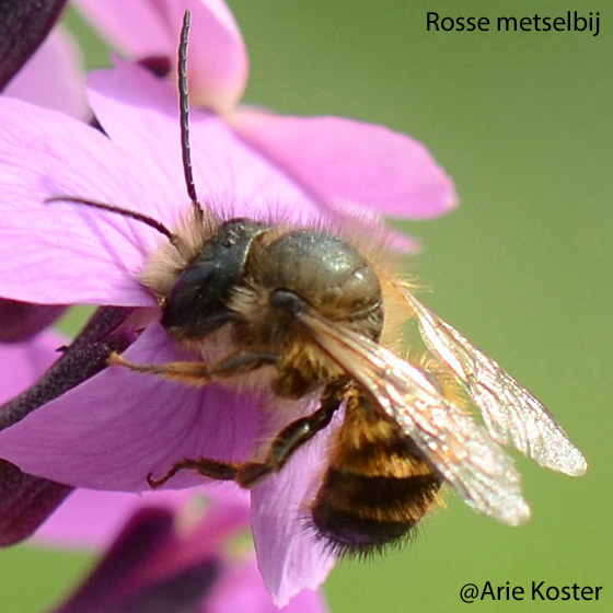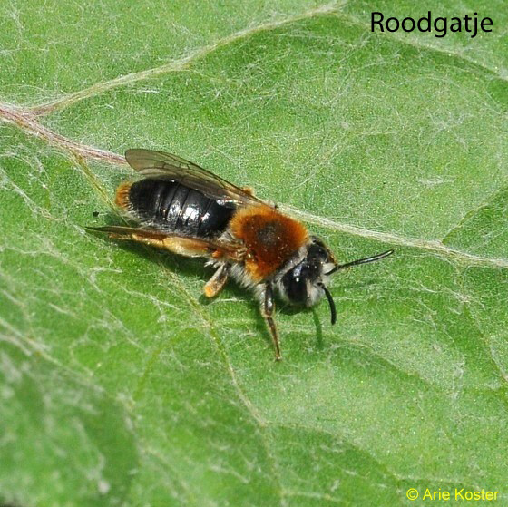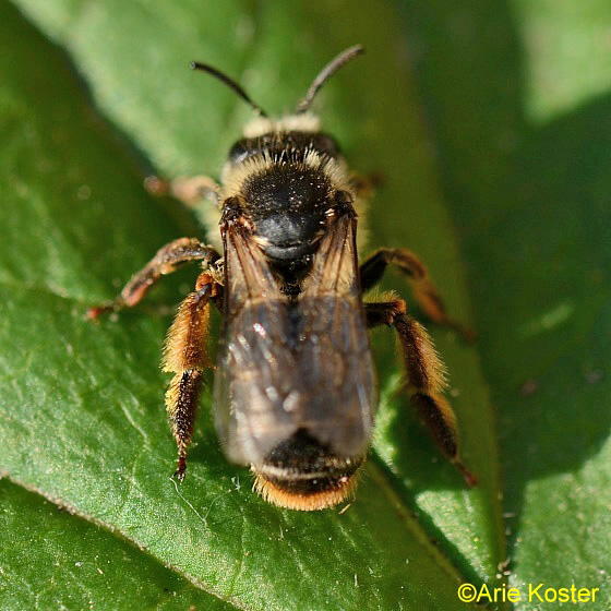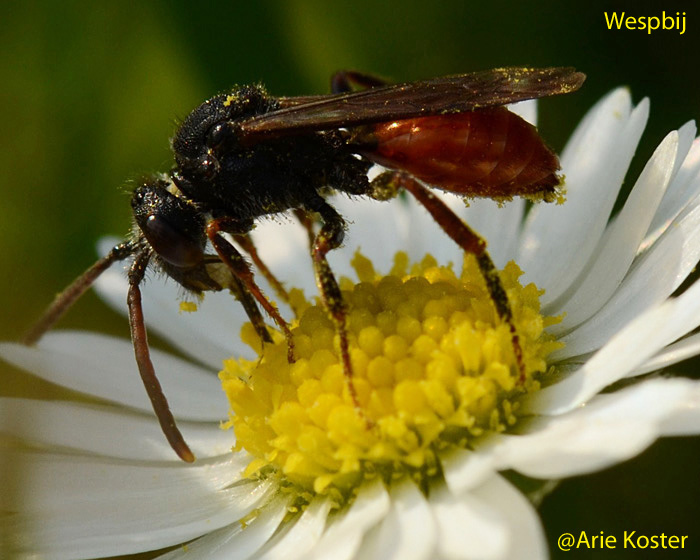 | Ereprijszandbij: heeft een gedeeltelijk rood achterlijf. |