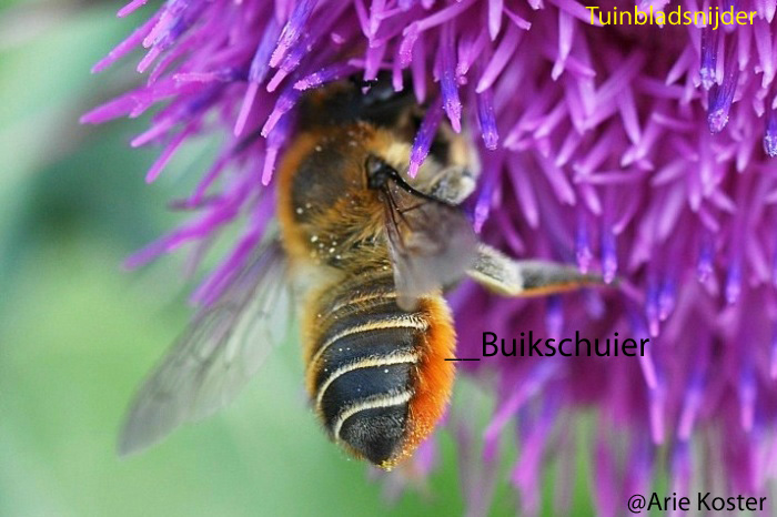| Bijen met een buikschuier: verzamelharen (scopa) aan de onderkant van het achterlijf |