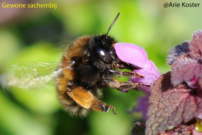 | Sachembijen (8): hommelachtige bijen, vrouwtje met een zeer lange tong, mannetje met een geel/ geelachtig gezicht. |