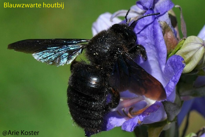 | Houtbijen (1). De blauwzwarte houtbij is vaak veel groter dan hommels. |
