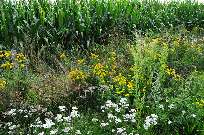 Dit overzicht laat zien dat er ook langs maïsakkers meer mogelijk is dan men doorgaans denkt. Als er een rand van 3 m zou zijn waarin geen chemische onkruidbestrijding en zware bemesting plaatsvindt, zouden ook maïsakkers kunnen bijdragen aan de biodiversiteit van het landschap. Honingbijen foerageren al jaren lang op maïsakkers; een bloemrijkere (om)rand(ing) zou ook voor wilde bijen zinvol zijn.