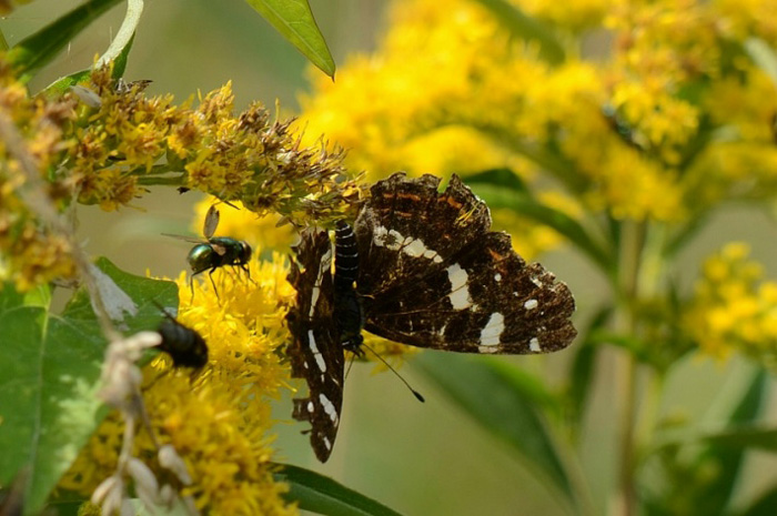 | Snijdersteeg: (23 juli 2016) Berm en greppel langs de maïsakkerrand: op kattenstaart komt kattenstaartdikpootbij in aantal voor; op grote wederik gewone slobkousbij. Op grote kattenstaart zijn ook behangersbijen (grote bladsnijder en tuinbladsnijder) waargenomen. Verder ook vlinders: zandoogjes, dikkopjes, atalanta en distelvlinder. |