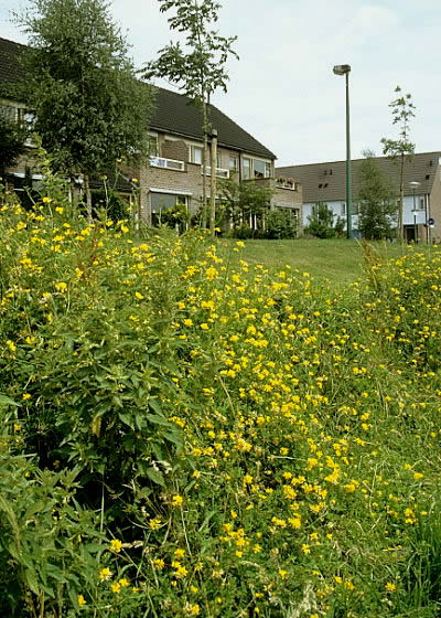 | Moerasrolklaver langs een afrastering In een woonwijk |