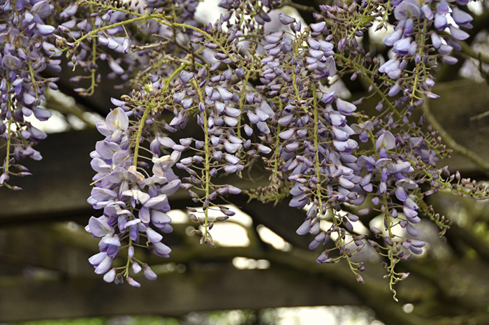 | Plant: de bloemen verschijnen voor het blad; twijgen links windend en daardoor goed te onderscheiden van de rechtswindende Japanse blauweregen (Wisteria floribunda). |